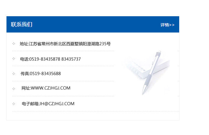 傳真:0519-83435688    郵編:213135    網址:WWW.czjhgj_com.cnjiasi.com    電子郵箱:JH@czjhgj_com.cnjiasi.com
